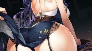 リボン紐がほどけそうな紐パン、食い込み尻と爆乳の誘惑